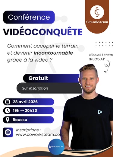 Lors de cette conférence, Nicolas Lehette (Studio AT) vous partagera des clés concrètes pour exploiter pleinement le potentiel de la vidéo : développer votre visibilité, affirmer votre positionnement et devenir une référence dans votre domaine.